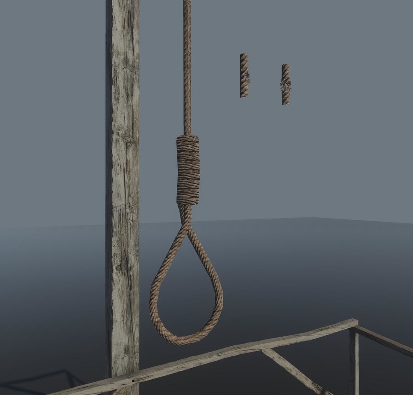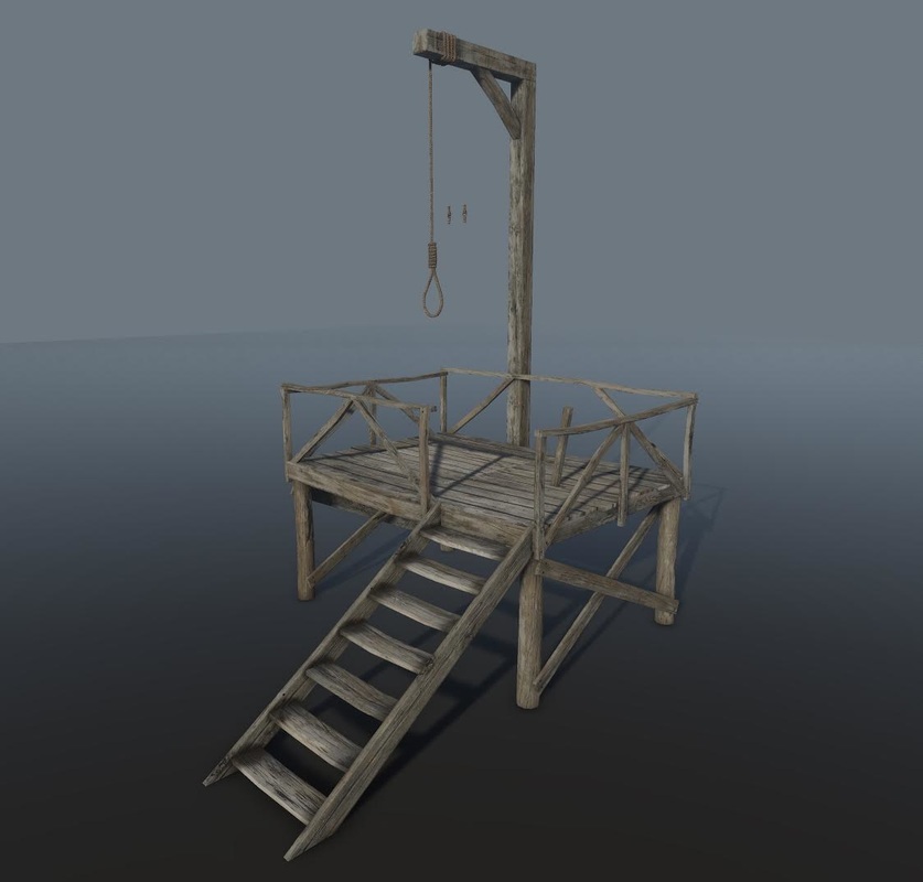 Here it is! A beautiful gallows, built by Vitaly. We have a specific need to be able to break the rope so you will find two pieces of rope just for the purpose. One piece is for simply nicking the rope while the other is for the rope ends when it is completely severed. I hope you enjoy this awesome gallows! I know I will.